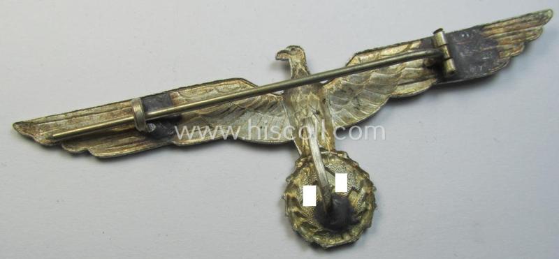 WH (Heeres- o. KM) greyish-silver-toned- (and/or: typical zinc- ie. 'Feinzink'-based) officers'-pattern breast-eagle (ie. 'Metall Offiziers-Brustadler für die Sommeruniform') as was specifically intended for usage on the white-coloured, summer-tunics