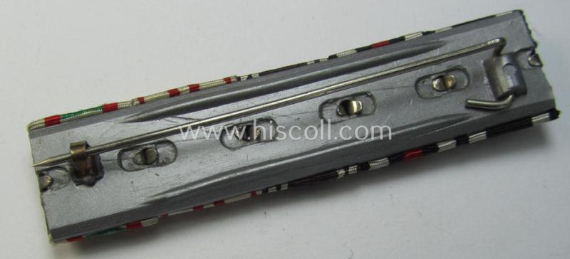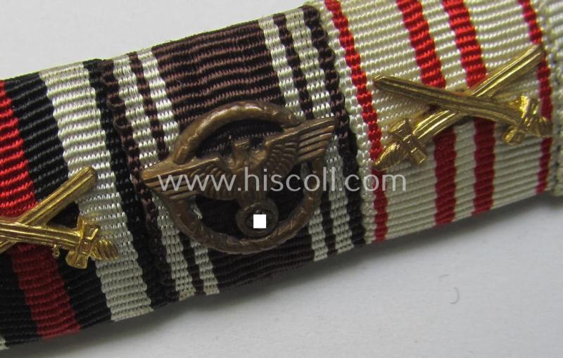 Five-pieced, WWI- (ie. N.S.D.A.P.) ribbon-bar (ie. 'Band- o. Feldspange') showing resp. the ribbons for an: 'EK II.Kl., a: 'FKK m. S.', an: 'N.S.D.A.P. DA 3. St.' (with attached miniature-device!) and two: Austrian WWI-medals