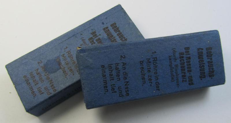 Smaller-sized, 'standard'-pattern- (ie. WH-issue) darker-blue-coloured- and/or carton-based box holding 4 glass-based tubes (ie. 'Riechmittel' o. Brechampullen') that come in a fully complete and/or untouched, condition