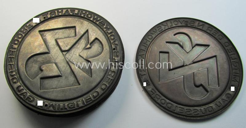 Attractive - and very detailed! - neatly reddish-bronze-coloured (and I deem copper-toned- ie. 'tin-metal'-based-) so-called: 'door-plaque' (ie. 'Türplakette') entitled: 'Mitglied der N.S.-Volkswohlfahrt' (N.S.V.) - Gau Düsseldorf'