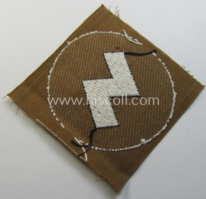 This is a very attractive - and truly rarely found! - DJ (ie. 'Deutsches Jungvolk') arm-badge as was intended for usage by a member who served within the: 'Oberbann 6' (ie. within one of the: 'Nationalpolitische Erziehungsanstalten' ie. 'Napola') and that comes in an overall very nice- (ie. never used- nor worn- ie. 'virtually mint- and unissued'-), condition. These 'Nationalpolitische Erziehungsanstalten' ie. 'Napola' were National Political Institutes of Education (officially abbreviated as: 'NPEA', however, commonly abbreviated as: 'Napola' for 'Nationalpolitische Lehranstalt' meaning National Political Institution of Teaching) were secondary boarding-schools in TR-Germany. They were founded as 'community education sites' after the National Socialist seizure of power in 1933. The black-coloured rune-sign - which is executed on a white-coloured background and is woven in the neat so-called: 'BeVo'-weave pattern as always - signifies that its bearer belonged to the: DJ 'Oberbann 6'. The badge - that is void of an RzM-etiket - shows some slight staining ie. dust simply caused by decades of storage only. Simply a very attractive - and truly rarely found! - example that will be impossible to be upgraded without doubt the most difficult to encounter of the series of six different ones!