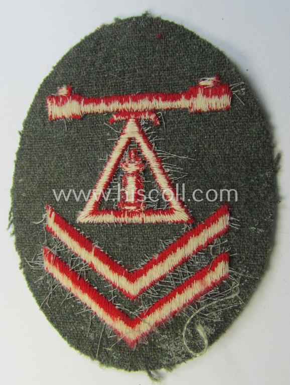 Superb - and actually scarcely encountered! - WH (KM) neatly machine-embroidered, so-called: career- ie. specialist-armbadge (ie. 'Tätigkeits-Abzeichen') as intended for usage by a: 'Küstenartillerie'- ie. 'Entfernungsmesser'-staff-member