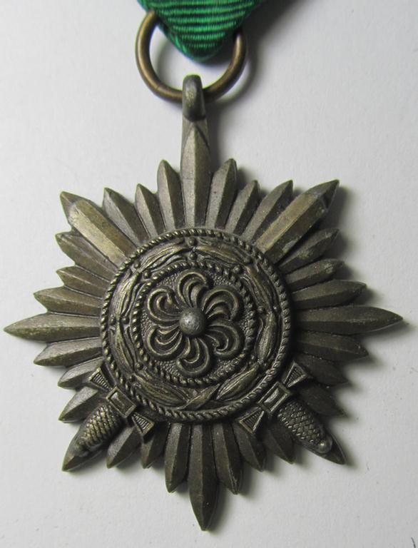 Superb, WH-related so-called: 'Tapferkeitsauszeichnung für Angehörige der Ostvölker, 3. Klasse in Bronze mit Schwertern' (being a non-maker-marked- and/or: 'Feinzink'-based example that comes mounted onto its period ribbon)