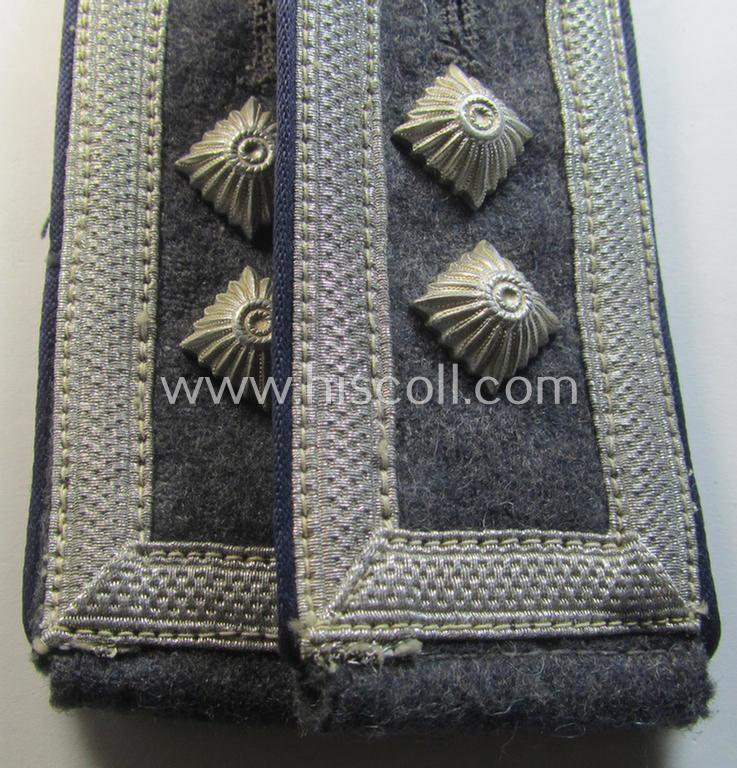 Attractive - and/or fully matching! - pair of WH (Luftwaffe) NCO-type shoulderstraps as piped in the darker-blue-coloured branchcolour as was intended for an: 'Oberfeldwebel der Sanitäts-Truppen'
