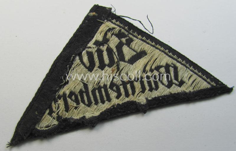 'HJ' ('Hitlerjugend') ie. 'BDM'- ('Bund Deutscher Mädel') district-triangle (ie. 'Gebietsdreieck') entitled: 'Süd Württemberg' (being a clearly used- ie worn example that regrettably misses its 'RzM'-etiket)