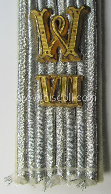 Attractive - albeit regrettably single! - WH (Heeres) neatly 'cyphered', officers'-type shoulderboard as piped in the white- (ie. 'weisser'-) branchcolour as was intended for usage by a: 'Leutnant des Wehr-Ersatzdienstelle im Wehrkreises VII'
