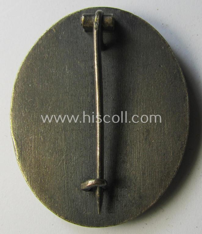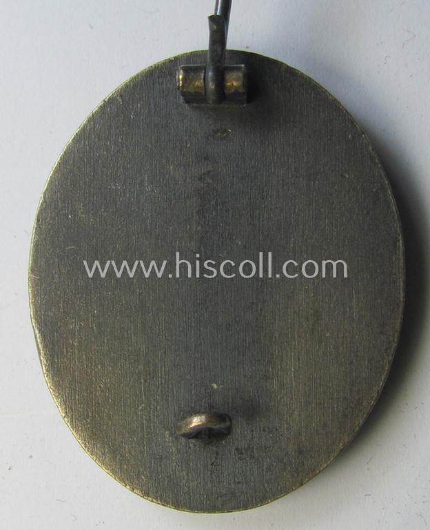 The truly attractive - and fairly luxuriously styled! - silver-class wound-badge (or: 'Verwundeten-Abzeichen in Silber') is executed in neat and/or minimally shiny (ie. somewhat tarnished), so-called: 'Buntmetall' and does show some obvious usage and/or wear (as can be seen on the pictures). The badge - which is naturally non-magnetic - comes mounted onto its fully functional (thin-shaped- and totally unaltered) pin (which is of course fully functional) and comes mounted onto its functional and dito pristine catch (as can be seen on the pictures). The badge is most certainly never cleaned and retains truly most of its silver-toned finish. It is - as stated above - a non-marked example that is I deem an early-period- (and truly quality-procuded!) piece that was produced by a (by me) unidentified maker. Simply an attractive - and with certainty desirable! - early-war-period, silver-class WB that is priced according to its overall nice- and/or untouched, condition!