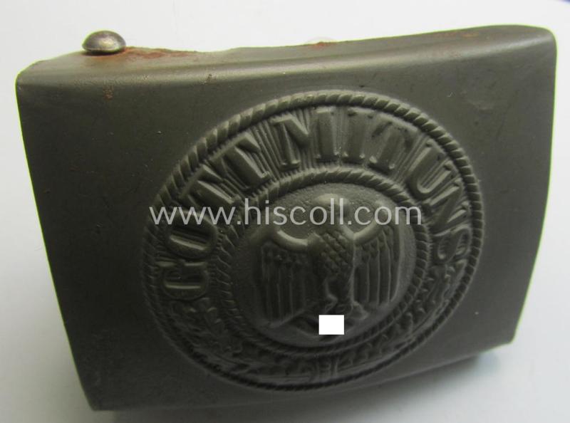 Attractive, WH (Heeres) field-grey-coloured- and/or steel-based belt-buckle being a maker- (ie. 'N.& H.') marked- and/or: '1942'-dated example that comes in an overall wonderful- (ie. 'virtually mint' but minimally rusted), condition