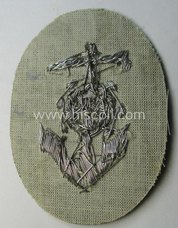 Superb, WH (Heeres) trade- and/or special-career insignia being a detailed- and/or neatly hand-embroidered example as executed on field-grey-coloured wool as was intended for a: 'Steuermann' (ie. enigineer-boat-pilot or helmsman)