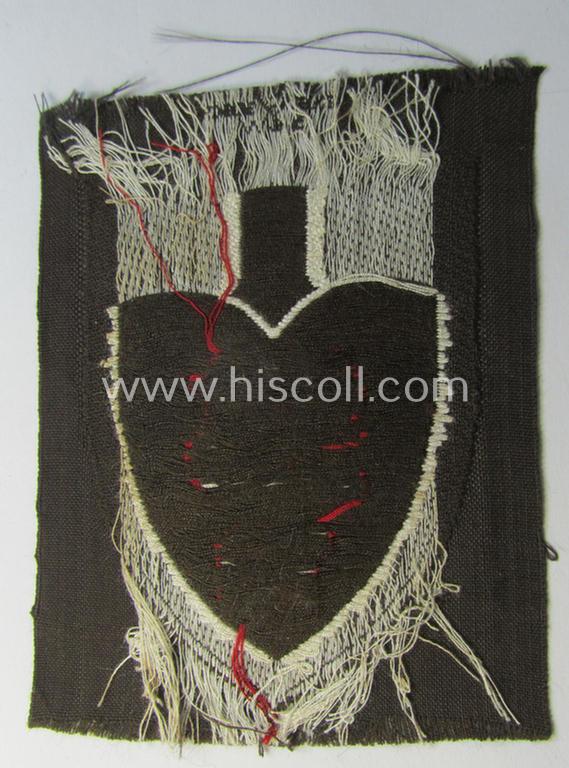 Attractive - unusally brownish-toned and rarely encountered! - EM- (ie. NCO-) pattern, so-called: RAD (ie. 'Reichsarbeitsdienst') sleeve-badge (or: 'Dienststellenabzeichen') bearing the (to date unidentified!) specialist-designation: 'W 10'