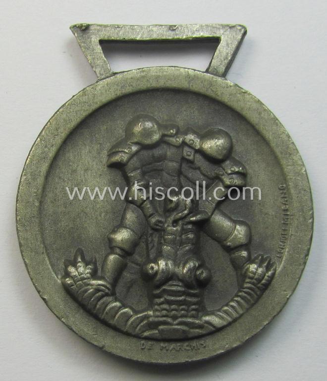 Superb, silver-coloured- (and I deem 'Feinzink'-based-) example of a: 'Deutsch-Italienische Feldzugsmedaille' (or: German-Italian campaign medal) that came together with its (regular-sized) piece of original ribbon