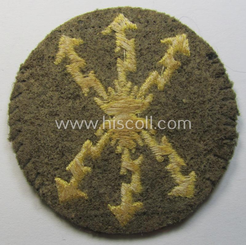 Attractive - and truly worn! - WH (Heeres) 'tropical'-issue, trade- and/or special-career insignia (ie. machine-embroidered 'Laufbahn- o. Tätigkeitsabzeichen') as was intended for 'Funkmeister' (or: radio-operator ie. radio-equipment NCO)