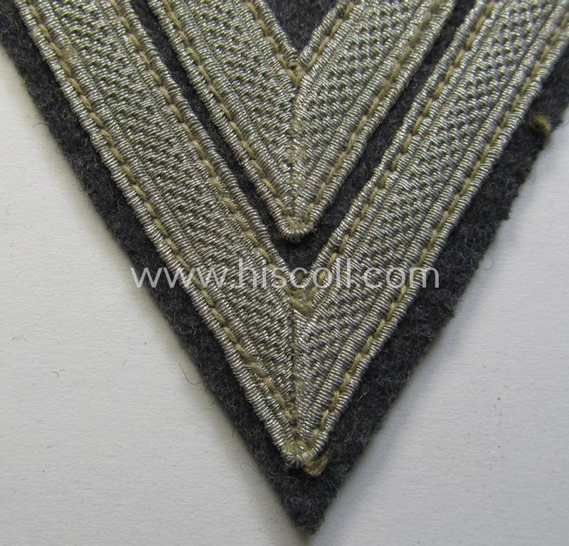 WH (Luftwaffe) 'Armwinkel' (or: arm-chevron) as executed on typical bluish-grey-coloured wool as was specifically intended for usage by a soldier with the rank of: 'Obergefreiter'