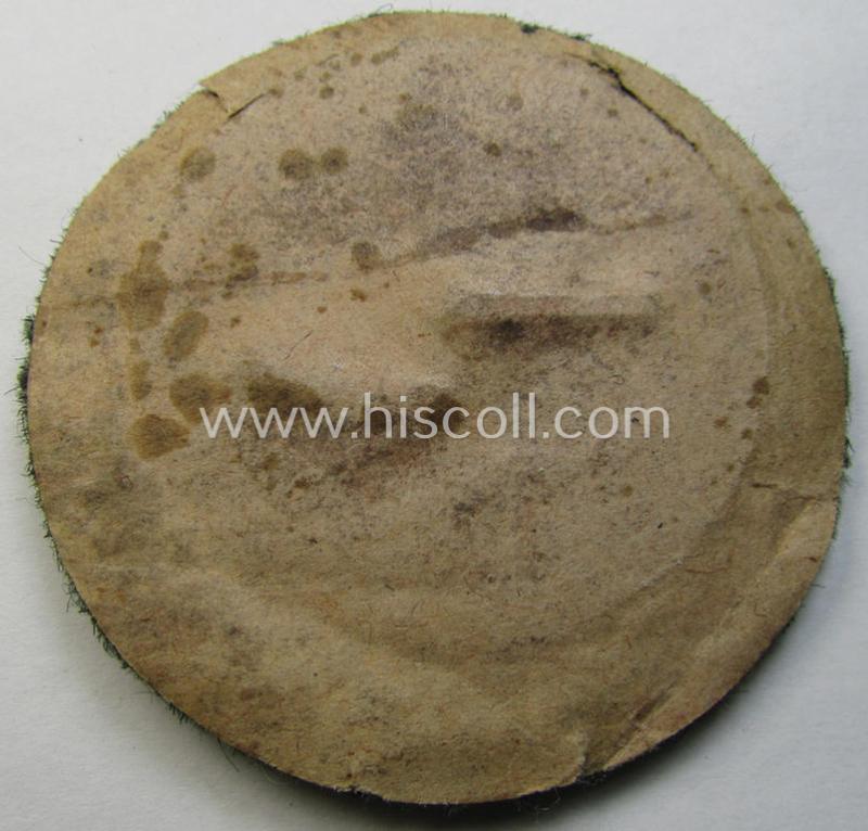 WH (Heeres- ie. Waffen-SS) so-called: 'Kraftfahrbewährungs-Abzeichen in Silber' (or: silver-class drivers' proficiency-badge) that comes mounted onto its piece of field-grey-coloured wool and that comes as probably issued- but never worn, condition