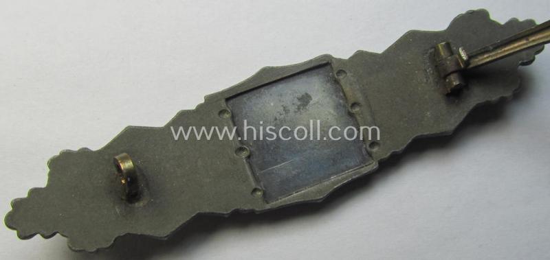 Superb, 'Nahkampfspange in Bronze' (or: bronze-class close-combat clasp ie. CCC) being a non-maker-marked- and/or minimally converse-shaped so-called: 'six-dot'-specimen as was produced by a to date unidentified maker- (ie. 'Hersteller')