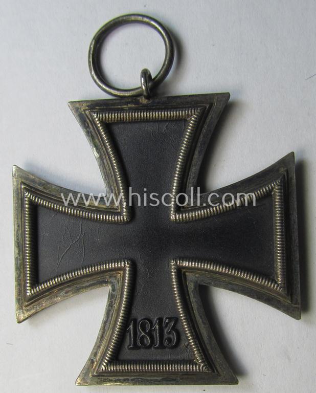 The attractive piece - which was surely issued but that was I deem hardly worn - came together with its folded but non-confectioned and 'minty' (and approx. 29 cms. long-sized-) ribbon (ie. 'Bandabschnitt'). The cross - which is totally void of any makers'-designation as more often - was with certainty never cleaned and has an attractive age-patina: it shows a tarnished silver-toned finish and has a minimally darkened- (ie. somewhat 'blackened'- ie. stained) finish (as can be seen on the pictures). The cross has a nicely preserved, black-finished (ie. somewhat 'satin-like'- ie. somewhat matted-) core: it is totally void of any damage nor paint-loss (as can be seen on the pictures). The piece is just a tiny bit dusty and/or stained but was never cleaned nor polished. The cross is (I deem) an evident specimen that was almost certainly produced by the desirable maker: 'Arbeitsgemeinschaft für Heeresbedarf in der Graveur- u. Ziselierung' as was based in the town of Berlin (ie. 'Hersteller 23'): it has very nice and/or pronounced detail as to be expected for a cross by this desirable maker. The IC was recently found at a German private-household and was never before in collectors'-hands. Simply an attractive, non-maker-marked 'EK II. Klasse' that is I deem accordingly priced!