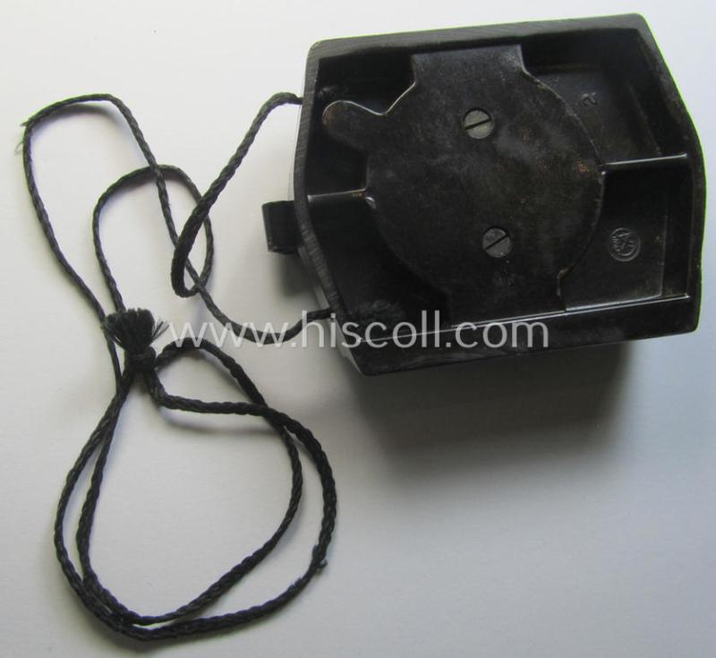 'Standard-issue'-pattern, WH compass (or: 'Marschkompass') as executed in black-coloured 'Bakelite' (being a non-maker-marked example that comes mounted onto its period cord)