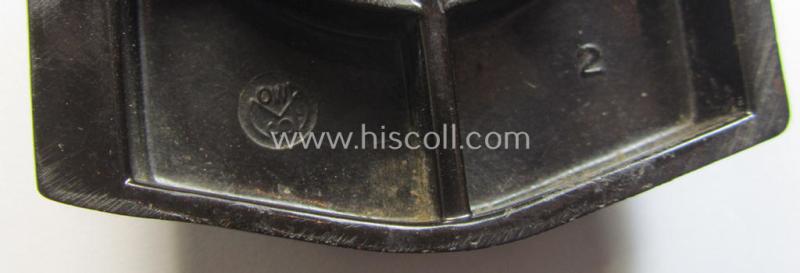 The compass - which is I deem only moderately used - shows a black-coloured 'inner-section' and is non-maker-marked on its top: it does show, however, an impressed makers'-designation (and '2'-numeral) on its bottom (something that is more often seen). The compass - which is executed in black-coloured so-called: 'Bakelite' and that comes as issued and/or used - is of course still fully functional and is truly void of any damage (as can be seen on the pictures). It is furthermore just a bit dirty ie. stained caused by fair usage and/or storage for decades. As stated above, does the compass show a makers'-designation-mark (small circle with a code) on its bottom. Simply a neat example of a 'standard-issued'-pattern, WH 'Marschkompass' that will be hard to be upgraded!