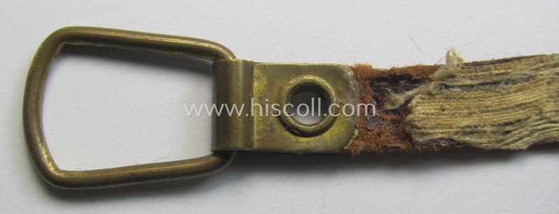 This a neat - and not that often encountered! - WH (Heeres) equipment-item: a 'high-quality'-produced, WH (Heeres) measuring-device (ie. 'tape-ruler') being a complete and fully functional example that comes in its (brownish-coloured- and natural-coloured) 'casing' and that is neatly marked: 'Heereseigentum', WaA-stamped and that is clearly dated: 'H1936' and that comes in an overall wonderful condition. The piece holds a 20-meter-sized measuring-tape (that is fully undamaged and that retains its period 'end-piece' that is (as more often!) fragile but present as can be seen on the pictures). The piece shows a neatly impressed 'Heereseigentum'-stamp and/or date ('1936') as can be seen on the pictures. These neat WH (Heeres) equipment-items saw wide-spread usage throughout the war and were a most appreciated item. Of specific interest is naturally also the fact that this example comes in such a very nicely preserved condition (something that is most certainly not often the case!).