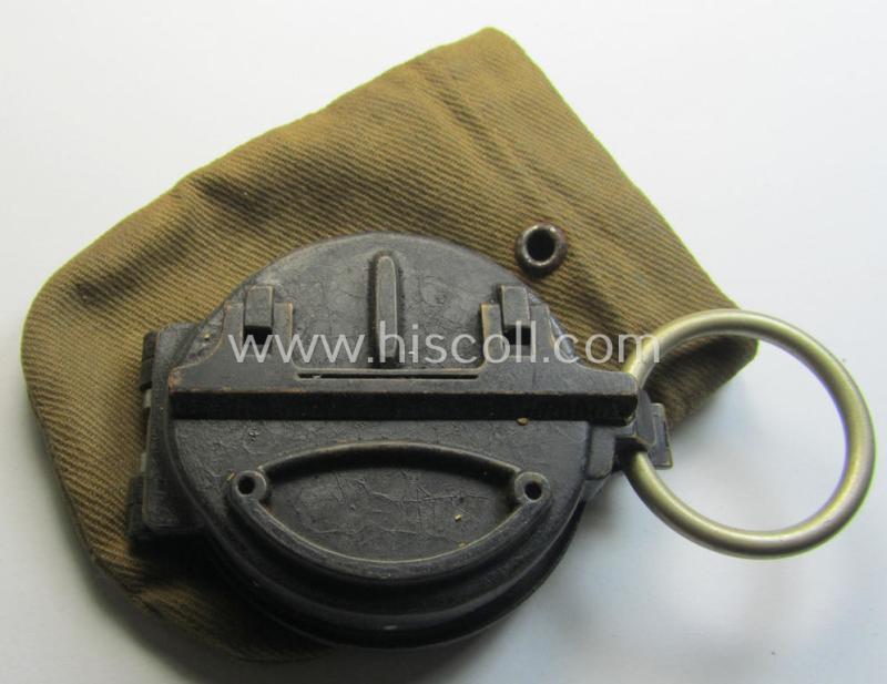 Neat, 'standard-issue'-pattern, black-coloured and/or copper-based WH-compass (ie. 'Marschkompass') being a non-maker-marked example that came stored in its (period) 'Tragetasche'