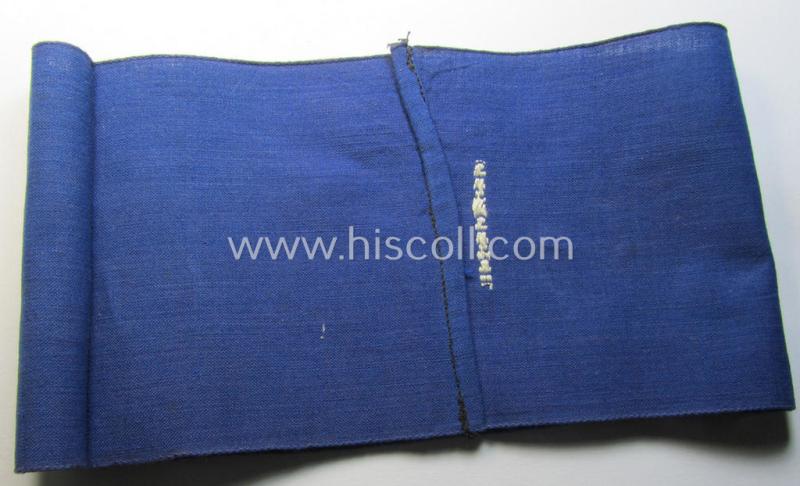Attractive, darker-blue-coloured so-called: RLB (or: 'Reichsluftschutzbund') 'Amtsträger'-armband depicting the typical 'RLB'-logo (with lettering) and showing an interwoven 'Ges.Gesch.'-patent-pending-designation