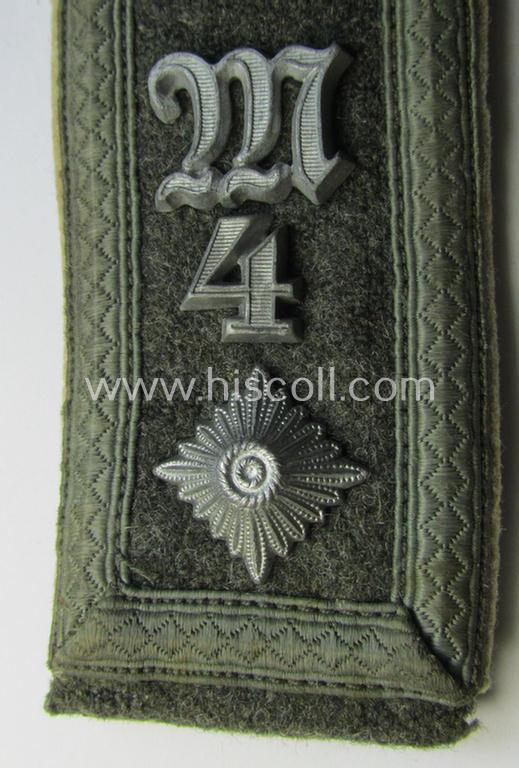 Attractive - moderately used albeit regrettably single! - neatly 'cyphered', so-called: 'M41- (ie. M43-) pattern', WH (Heeres) NCO-type shoulderstrap as was specifically intended for a: 'Feldwebel des Maschinengewehr-Abteilungs 4'