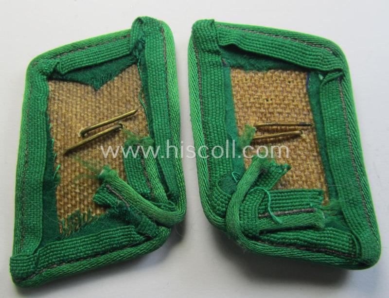 Attractive - fully matching and with certainty rarely found! - bright-green-coloured- (and/or: bright-green piped!) pair of WH (Luftwaffe) collar-patches (ie. 'Kragenspiegel') as was intended for usage by a: 'Soldat der LW-Felddivisionen'