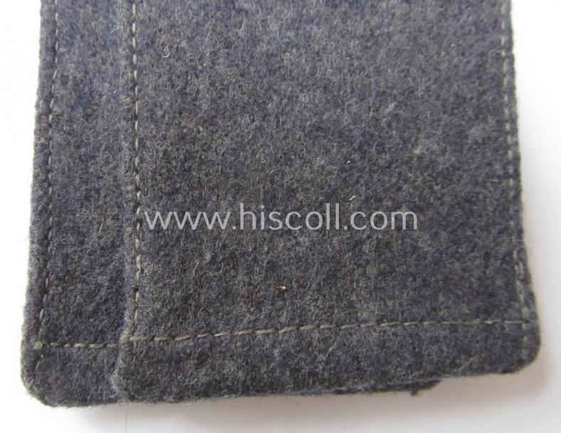 This is an attractive - interesting and actually never before seen! - pair of fully matching enlisted-mens'-type, Wehrmacht-related so-called: 'Ostvölker' (ie. presumably Luftwaffe-related?) 'pointed-style' shoulderstraps that comes in an overall very nice- (ie. simply never used- nor worn-, condition. The pair is constructed from typical, bluish-grey-coloured WH Luftwaffe-type wool and comes without any branchcolour (ie. is void of any piping as can be noticed on the pictures). The pointed-style straps (something that in my opinion clearly denotes their 'Russian'- ie. 'Ostvölker-origin') both measure 11 cms. in length and are fairly wide-shaped as to be expected: they come in a never used ie. 'virtually mint-/unissued' condition. The pair is neatlty backed with greyish-coloured linnen. The set was with certainty intended for usage by one of the foreign volunteer- (ie. 'Ostvölker'- ie. Russian-based-) regiments or units. To date the exact usage or signifigance of these shoulderstraps could not yet be identified. Simply a very interesting pair of 'Ostvölker'-related shoulderstraps that can easily be graded 'very scarce'.