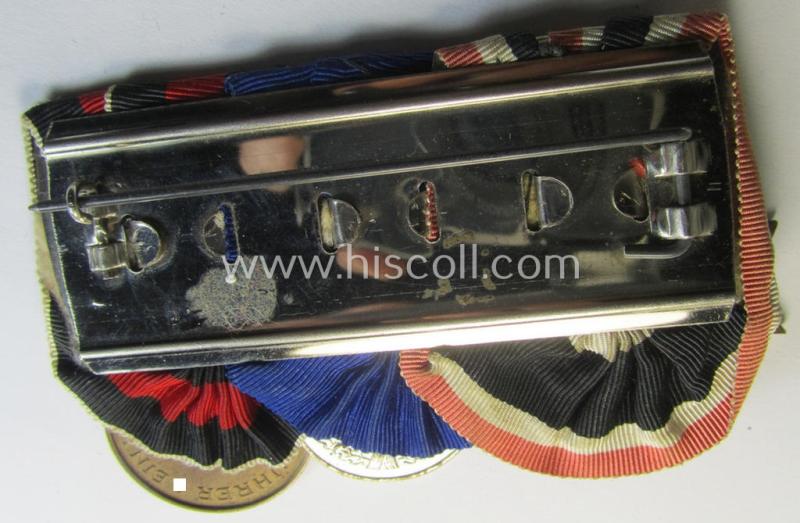 Three-pieced medal-bar (ie. 'Ordenspange') respectively depicting a: 'KvK II. Klasse m. Schw.', a: WH (Heeres o. KM) so-called: 'Dienstauszeichnung für 4 Jahre Treue Dienste' and a: Czech 'Anschluss'-medal: '1 Oktober 1938'