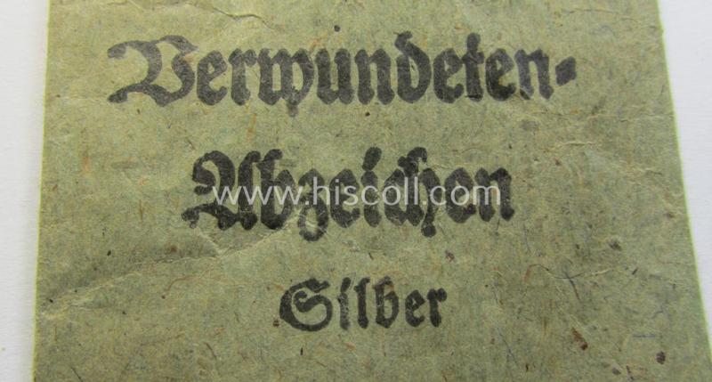Attractive, silver-class wound-badge (or: 'Verwundeten-Abzeichen in Siber') being a non-maker-marked example that comes stored in its original, carton-based pouch as was produced by the maker (ie. 'Hersteller'): 'Steinhauer & Lück'