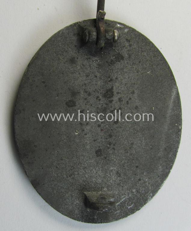 This is an attractive - and in such complete and untouched condition fairly unusually seen! - example of a: silver-class wound-badge (or: 'Verwundeten-Abzeichen in Silber') being a (typical) non-maker-marked- and/or zinc- (ie. 'Feinzink'-) based specimen that comes stored in its original, greenish-toned and carton- (ie. 'Zellstoff'-) based pouch as was produced by the maker (ie. 'Hersteller'): 'Steinhauer & Lück' and that comes in an overall very nice- (I deem issued- albeit hardly- or even never worn-), condition. The greyish-toned - zinc- (ie. 'Feinzink'-) – based silver-class wound-badge is an attractive example having great detail: it has a minimal 'blackened' tarnish ie. age-patina. It comes naturally mounted onto its functional (and totally unaltered) pin- ie. pin-/catch set-up (as can be noticed on the pictures). The pouch - which is scarcely found in itself! - is unusual, having a printed makers'-mark on its back (that reads: 'Steinhauer & Lück' as based in the town of Lüdenscheid). The pouch comes also in an overall very nice - and of course fully functional - condition. The set was found as such and always belonged together. I deem that the sets' comparative scarcity justifies my asking-price!