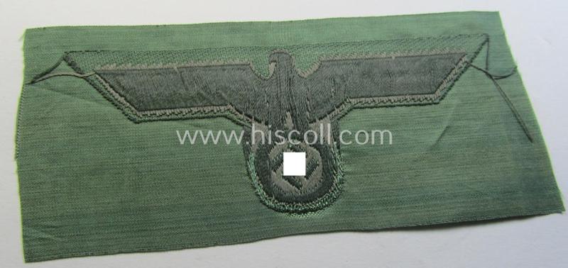 WH (Heeres) mid-war-period- and/or greyish-coloured breast-eagle of the so-called: 'M41'- (ie. 'M43'-) pattern 'Brustadler für Mannschaften u. Unteroffiziere') as executed in the neat 'BeVo'-weave pattern on a field-grey-coloured background