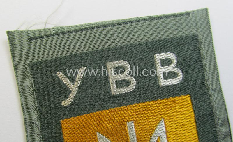 Attractive, 'BeVo'-type armshield entitled: 'YBB' (being a 'virtually mint- ie. unissued' example piece as intended for a volunteer who served within the 'Deutsche Wehrmacht' ie. within the 'Ukrainisches Legion')