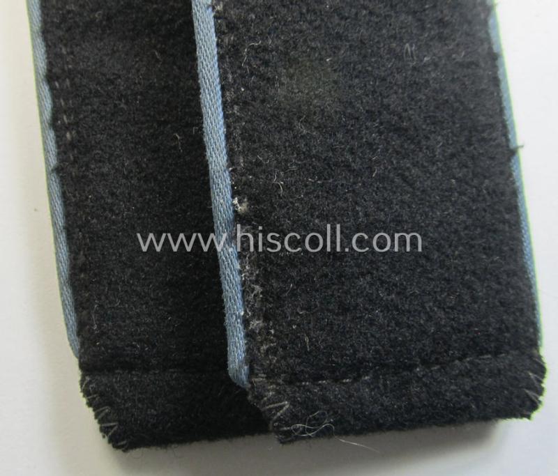 Both shoulderstraps have the typical Waffen-SS-pattern- and/or: smaller-shaped tongues as only observed on genuine Waffen-SS-pattern straps and have the neat light-blue- (ie. 'hellblauer'-) coloured branchcolour and/or 'silk-like'-type branchcolour (ie. piping) attached: the set is fully 'text-book' in all facets and will be truly hard to be upgraded. The shoulderstraps - which are both 11 cms. sized in length as more often encountered - show the (typical) 'Waffen-SS'-styled, field-grey-coloured- and/or: woolen-based 'underlays' (as can be seen on the pictures). The pair shows some minimal age and/or staining simply caused by minimal wear and/or age. In any case is this a fully garuanteed, 100% original Waffen-SS shoulderstrap-set that comes in a wonderful condition and that is consequently priced. The pair - that originated from my private collection - shows hardly any wear nor damage and is as stated only slightly used ie. worn. It should be noted that these original, period Waffen-SS shoulderstrap-pairs can easily be graded 'scarce': even if they are piped in the more commonly encountered, light-blue-coloured- (ie. 'SS-Nachshub-Truppen'- or SS-transport-troops-related-) branchcolour!