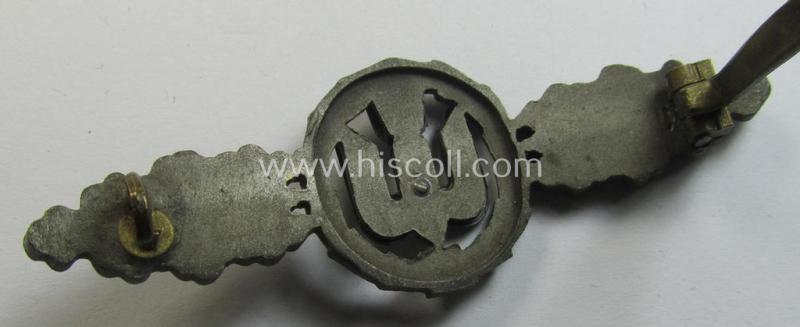 Attractive - truly converse-shaped! - zinc- (ie. 'Feinzink' and/or partly 'Buntmetall'-) based- and non-maker-marked example of a WH (Luftwaffe) 'Frontflugspange für Kampfflieger in Bronze'
