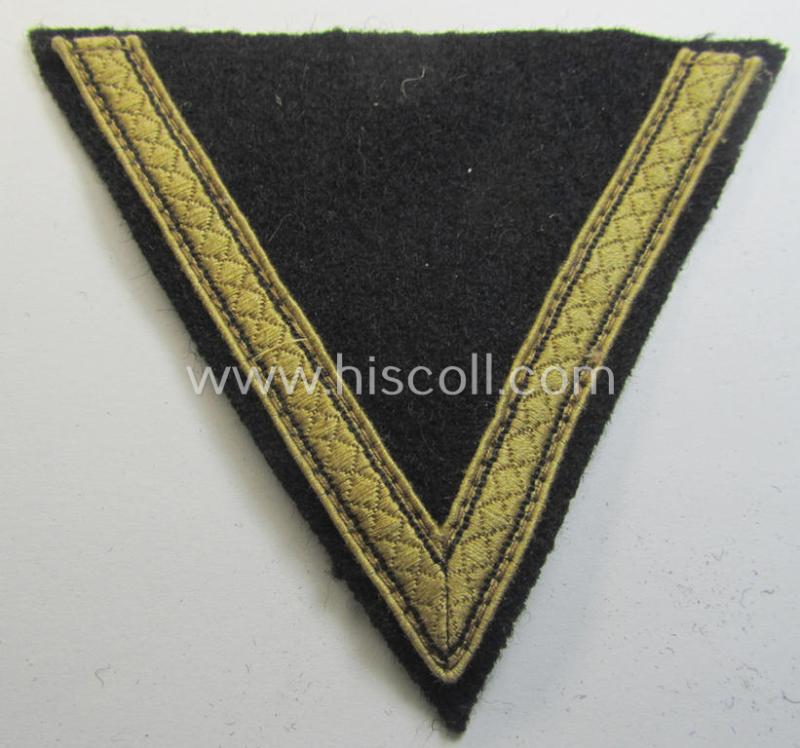 Waffen-SS-type 'Armwinkel' (or: rank-chevron) as executed on black-coloured wool as was specifically intended for usage by an SS-soldier with the rank of: 'SS-Sturmmann'