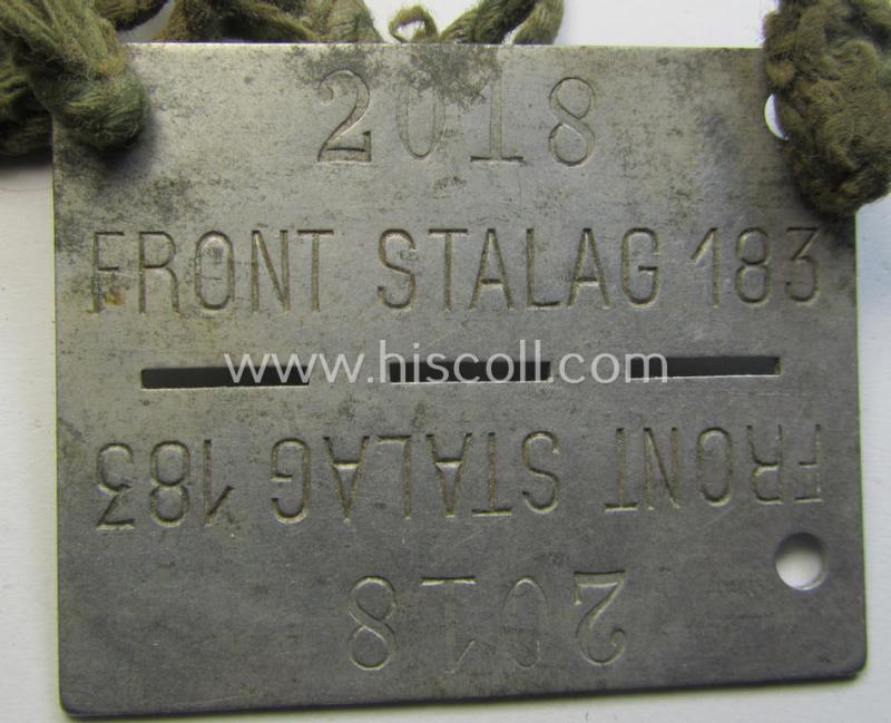 Unusually found, zinc-based WH (Heeres) 'Frontstalag'- (ie. prisoner-related-) ID-disc bearing the clearly stamped camp-designation that reads: 'Frontstalag 183' and that comes still mounted onto its (period-attached) cord as issued- and/or worn