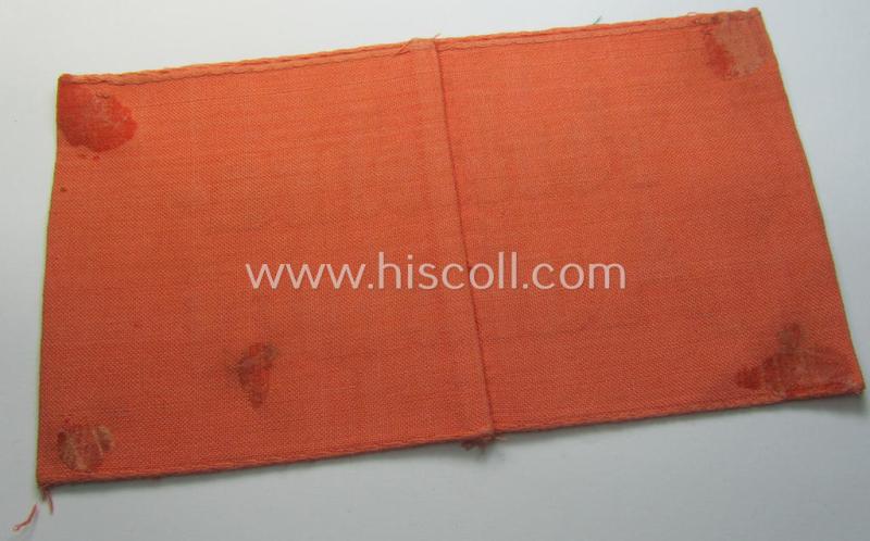 This is a truly attractive - and with certainty scarcely encountered! - bright-orange-coloured example of a WH (Heeres) related armband (ie. 'Armbinde') entitled: 'Verkehrs-Aufsicht' being an example of the 'partly-woven'-type in a technique similar to the 'BeVo'-weave pattern and that comes in a just moderately used- and/or worn, condition. These linnen-based armbands were presumably intended for usage by military staff-members (ie. officers) tasked with traffic-control duties at the front and were presumably worn on the left upper-arm of the regular WH (Heeres) greatcoats and/or (officer-) tunics. This example - which has been 'off-factory sewn-together - has a total size of approximately 40 cms. and is 11 cms. wide - and is constructed from bright-orange-coloured linnen and shows the neatly interwoven text: 'Verkehrs-Aufsicht'. The armband is totally void of an ink-stamp (ie. 'Dienstsiegel') and is just a tiny bit stained and is moreover a tiny bit wrinkled. The piece – that was once glued into an album or alike and does show some minimal glue-remains on its back - is very nicely made and shows only moderate age ie. staining (simply caused by decades of storage and/or moderate wear). This example originates from a larger-sized armband-collection that was compiled over many years and that I recently acquired for the web-site. Simply a very attractive - and with certainty scarcely encountered! - WH (Heeres) related armband that is with certainty accordingly priced!