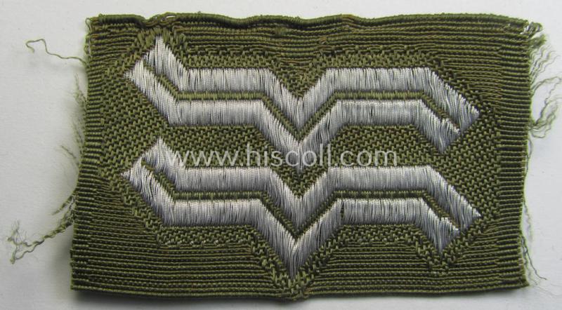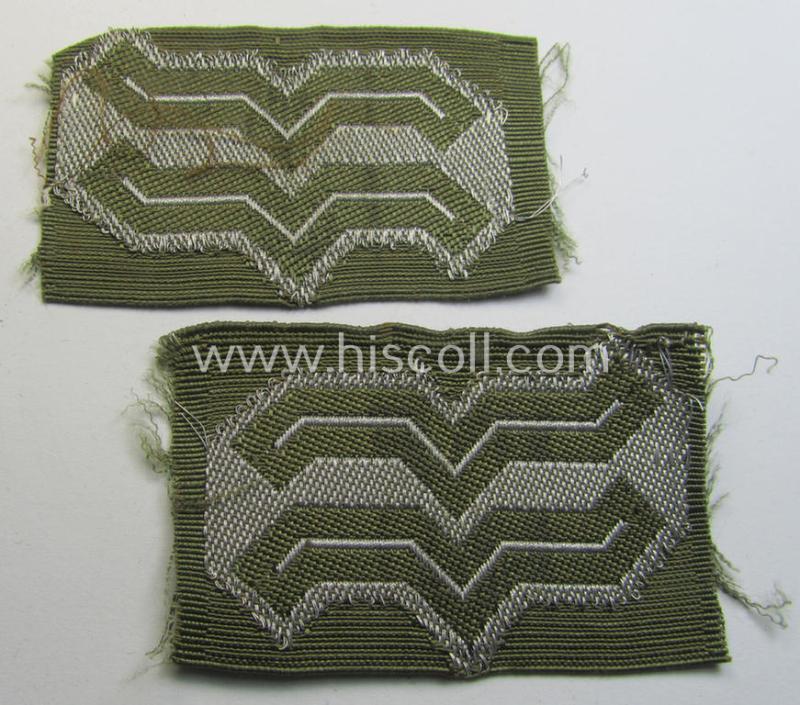 Attractive - fully matching and scarcely seen! - pair of an OT- (ie.: 'Organisation Todt'-) related greenish-brown-coloured, enlisted-mens'- (ie. NCO-) pattern collar-patches (ie. 'OT-Dienstgraden-Abzeichen') as intended for an: 'Oberfrontführer'