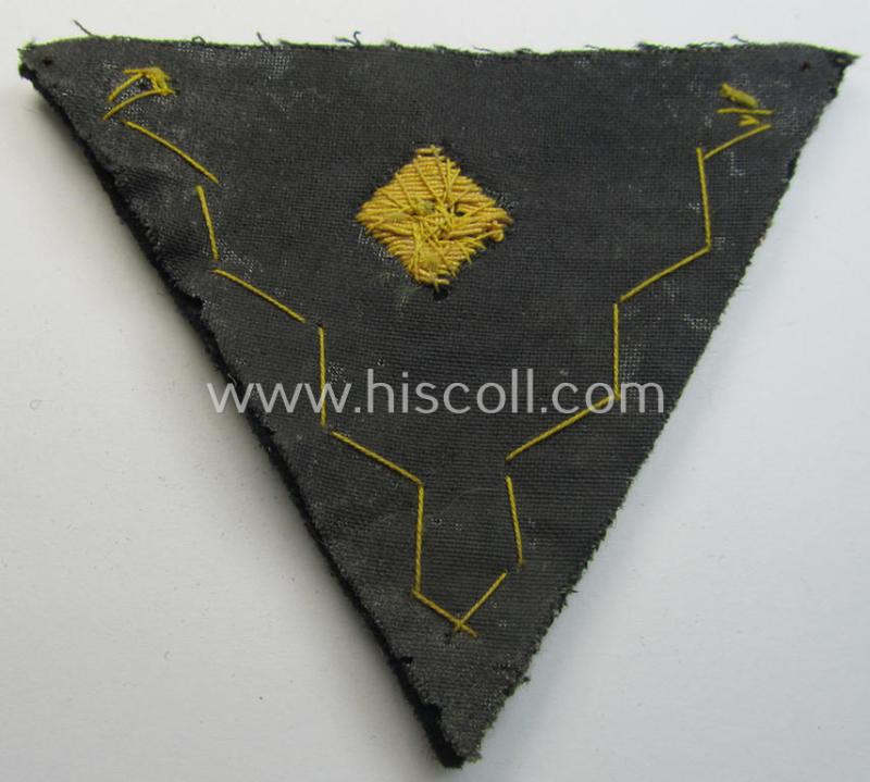 Neat - and not that often seen! - example of a 'standard-issue'-type, WH (Kriegsmarine) rank-chevron (or: 'Armwinkel') as was intended for usage on the various darker-blue-coloured naval tunics as was intended for an: 'Matrosen-Stabsgefreiter'