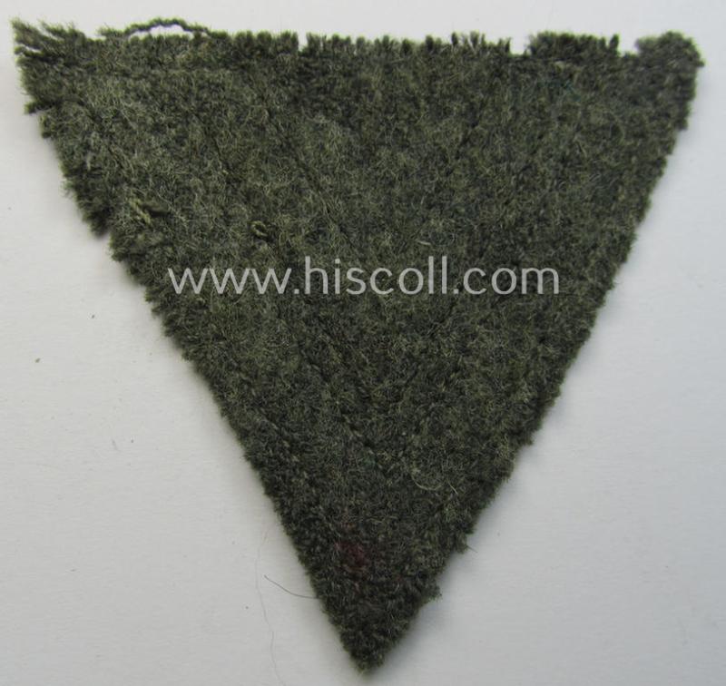 This is an attractive - and I deem truly used and/or worn! - example of a WH (Heeres) 'Armwinkel' (ie.: arm-chevron) as was executed on a typical, field-grey-coloured- and/or woolen-based background as was intended for usage by a soldier with the rank of: 'Obergefreiter' (ie. private first-class) and that comes in an overall nice- (and I deem just moderately used- ie. carefully tunic-removed-), condition. The chevron is neatly executed and shows a double stripe of bluish-grey-coloured- (ie. truly 'sub-dued') and/or 'standard'-pattern NCO-braid (as can be seen on the pictures). The piece is void of any backing (as can be seen on the pictures). It sounds maybe strange but these 'simple' Heeres-related rank-insignia are quite hard to encounter. Simply an attractive WH-rank-badge that is I deem accordingly priced!