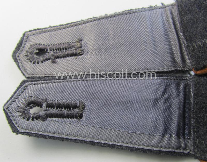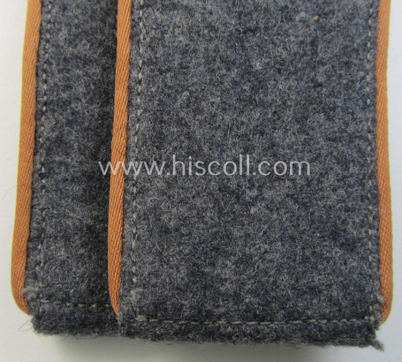 Attractive - and fully matching! - pair of WH (Luftwaffe) EM-type shoulderstraps as piped in the light- ie. rust-brown- (ie. 'hell- o. kupferbrauner'-) coloured branchcolour as was intended for a: 'Soldat der LW-Nachrichten-Truppen'
