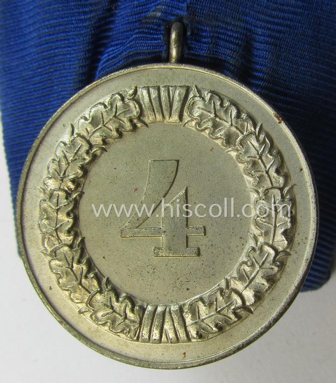 Attractive, silver-toned WH (Heeres o. KM) so-called: 'Einzelspange' showing a: 'WH-Dienstauszeichnung 4. Stufe' (as was intended for 4 years of loyal-service) and that shows a detailed, Heeres o. KM-type-eagle-device, period-attached