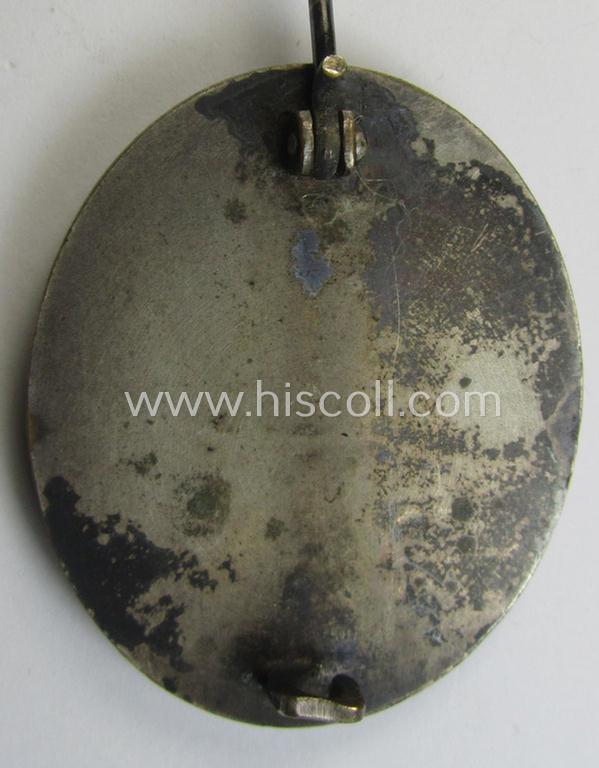 The truly attractive - and fairly luxuriously styled! - silver-class wound-badge (or: 'Verwundeten-Abzeichen in Silber') is executed in neat and/or: somewhat tarnished, so-called: 'Buntmetall' and does show some obvious usage and/or wear (as can be seen on the pictures). The badge - which is naturally non-magnetic - comes mounted onto its fully functional (thin-shaped- and totally unaltered) pin (which is of course fully functional) and comes mounted onto its functional and dito pristine catch (as can be seen on the pictures). The badge is most certainly never cleaned and retains truly most of its silver-toned finish: it is just a bit tarnished by age. It is - as stated above - a non-marked example that is I deem an early-period- (and truly quality-procuded!) piece that was produced by a (by me) unidentified maker. Simply an attractive - and with certainty desirable! - early-war-period, silver-class WB that is priced according to its overall nice- and/or untouched, condition!