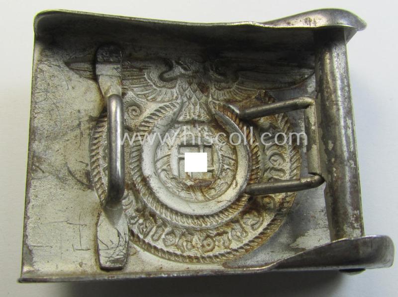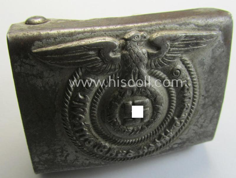 Waffen-SS, EM- (ie. NCO-) type belt-buckle (being a typical, unmarked and typical steel-based: 'Overhoff & Cie'-example) that comes in a surely issued- and/or moderately used- ie. worn, condition
