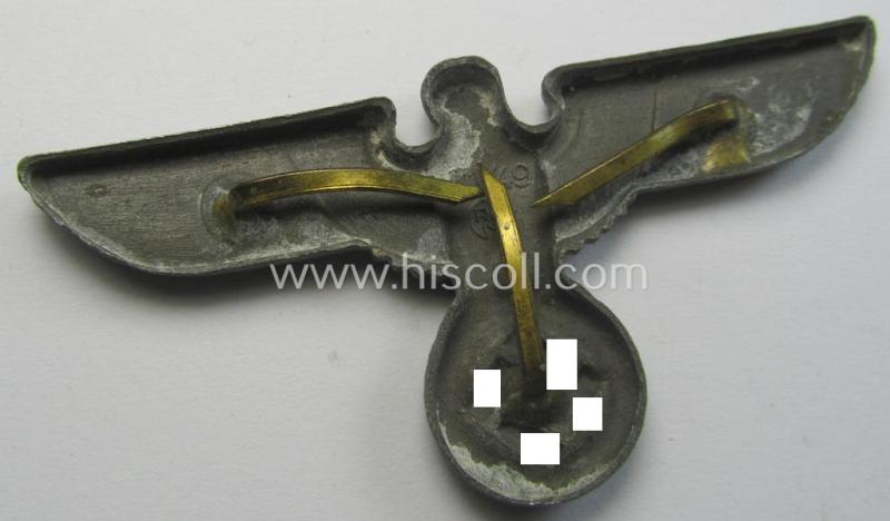 Attractive - greyish-silver-coloured- and/or: zinc- (ie. 'Feinzink'-) based (political-style) visor- (ie. 'Schirmmützen'-) cap-eagle being a detailed example that is neatly: 'RzM' and/or 'M1/49' marked on its back