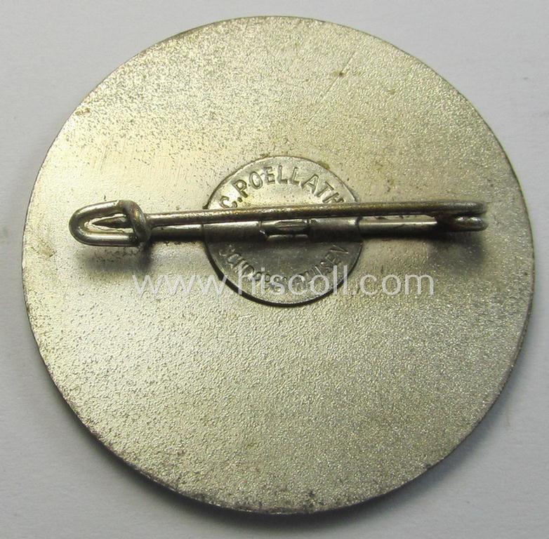 Commemorative - and neatly enamelled! - 'Veranstaltungsabzeichen' (ie. 'tinnie') being a maker- (ie. 'Carl Poellath'-) marked example that is showing the text: 'Deutsche Wintersport Meisterschaften 1935 - Garmisch-Partenkirchen'