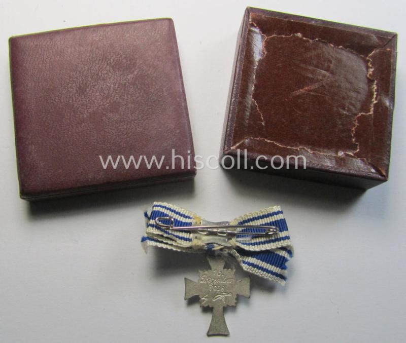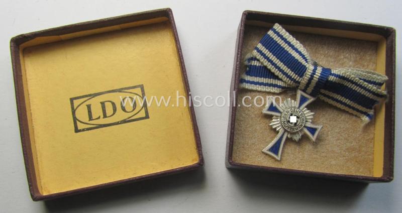 Attractive - albeit non-maker-marked - 2 cms.-sized miniature of an: 'Ehrenkreuz der Deutschen Mutter in Silber' that came stored in its equally non-maker-marked, two-pieced 'LDO'-type box (ie. etui) as recently found