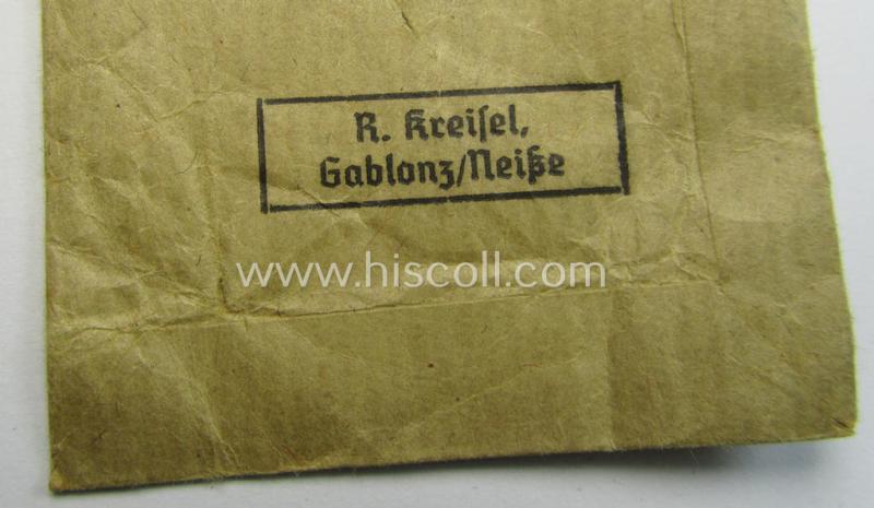 Superb medal-set: 'KvK 2. Klasse mit Schwertern' being a maker- (ie. '67'-) marked specimen by the maker- (ie. 'Hersteller') named: 'R. Kreisel' and that comes packed in its original, 'Zellstoff'-based pouch of issue as found