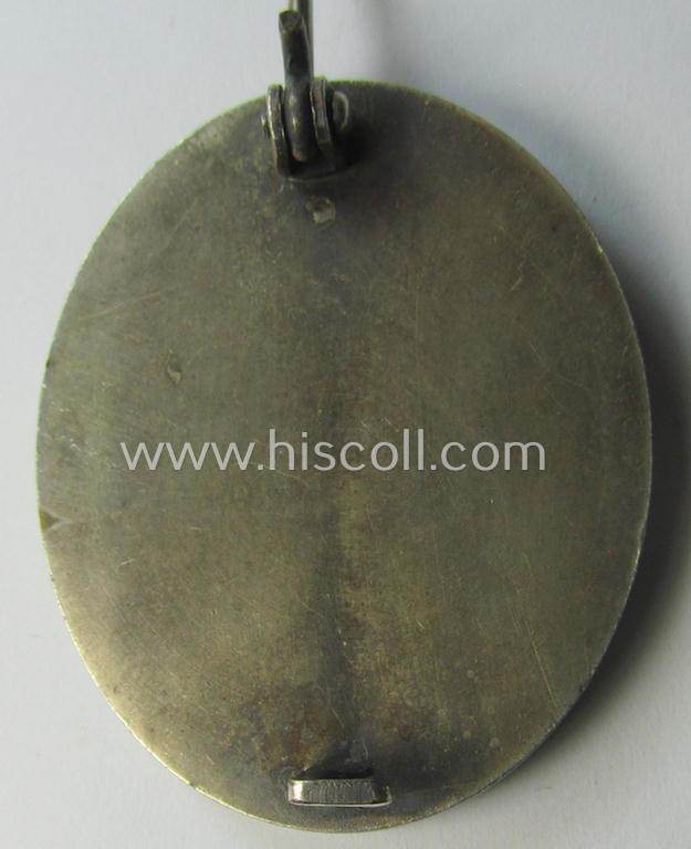 The truly attractive - and fairly luxuriously styled! - silver-class wound-badge (or: 'Verwundeten-Abzeichen in Silber') is executed in neat and/or: somewhat tarnished, so-called: 'Buntmetall' and does show some obvious usage and/or wear (as can be seen on the pictures). The badge - which is naturally non-magnetic - comes mounted onto its fully functional (thin-shaped- and totally unaltered) pin (which is of course fully functional) and comes mounted onto its functional and dito pristine catch (as can be seen on the pictures). The badge is most certainly never cleaned and retains truly most of its silver-toned finish: it is just a bit tarnished by age. It is - as stated above - a non-marked example that is I deem an early-period- (and truly quality-procuded!) piece that was produced by a (by me) unidentified maker. Simply an attractive - and with certainty desirable! - early-war-period, silver-class WB that is priced according to its overall nice- and/or untouched, condition!
